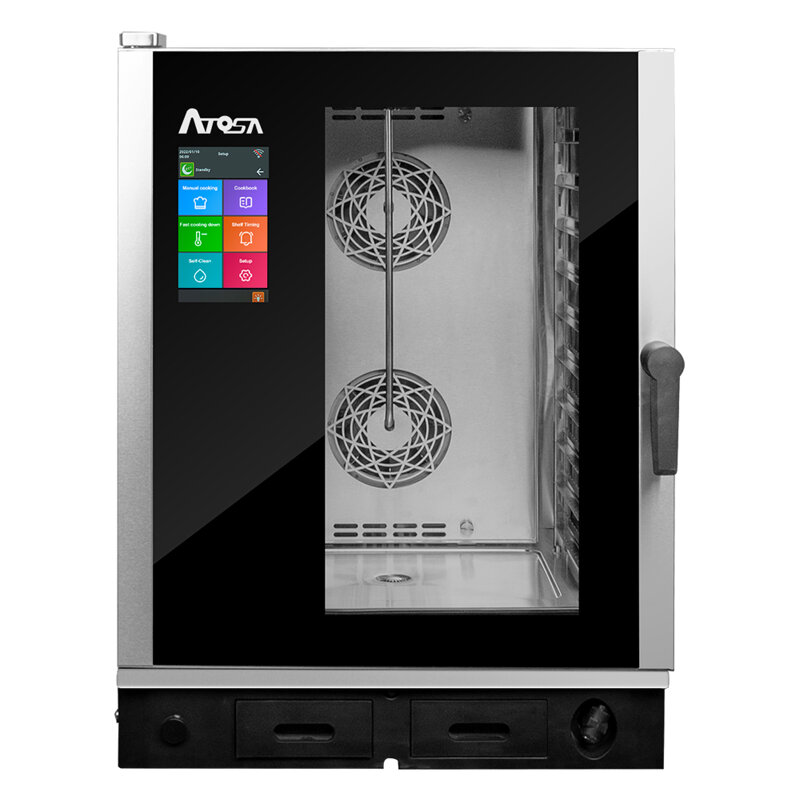 ATOSA | Forno gastronomia con funzioni bakery e pastry. Configurazione 10 teglie GN1/1. Sistema di lavaggio incluso. Sistema vapore diretto. Sonda a cuore multipunto. | Sistema di lavaggio incluso | Sonda al cuore multipunto | Motore a 8 velocità | Ricettario intuitivo | Resistenze parzializzate