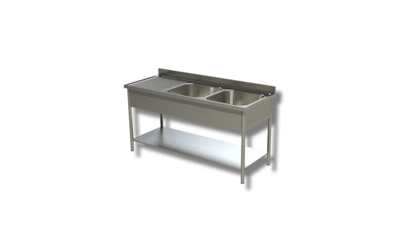 LAVATOIO SU FIANCHI 2 VASCHE GOCCIOLATOIO SX PROFONDITA' 60 180 x 60 x 85