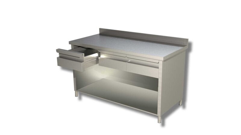 TAVOLI ARMADIATI A GIORNO CON CASSETTI ORIZZONTALI PROFONDITA' 70 CON ALZATINA 140 x 70 x 85